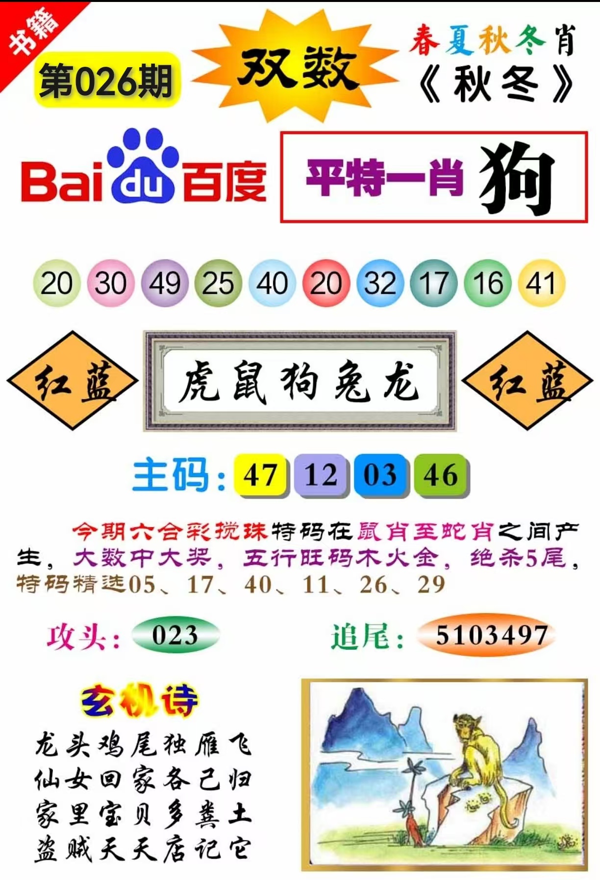 | 020期 | 【单数+猴鼠】 | 猴10 |
