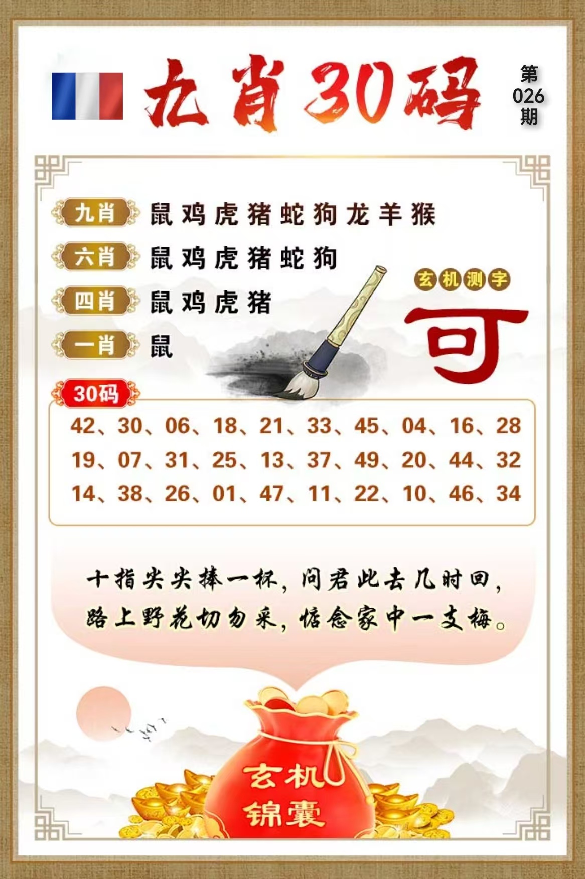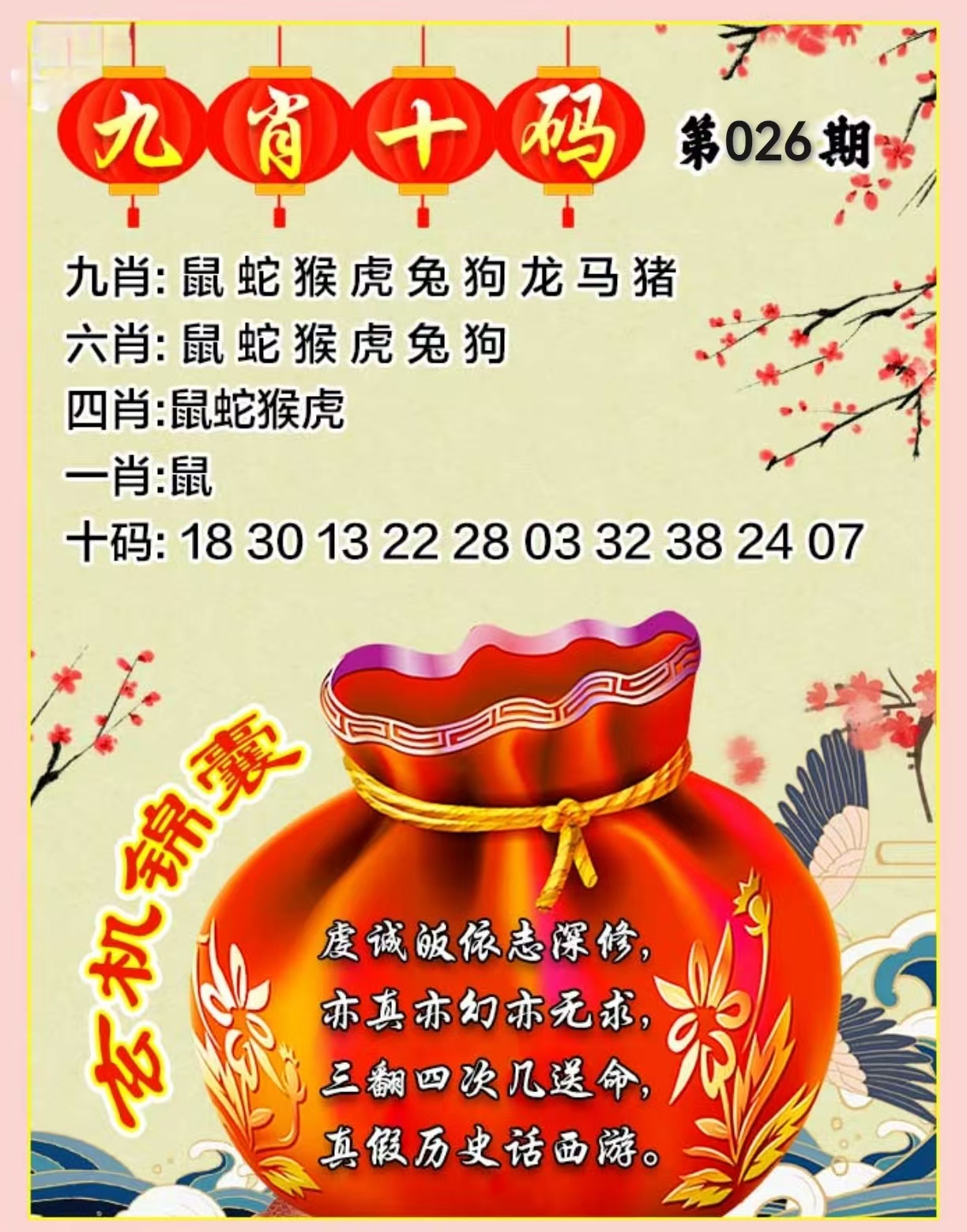 | 018期 | 【单数+猴鼠】 | 猪19 |
