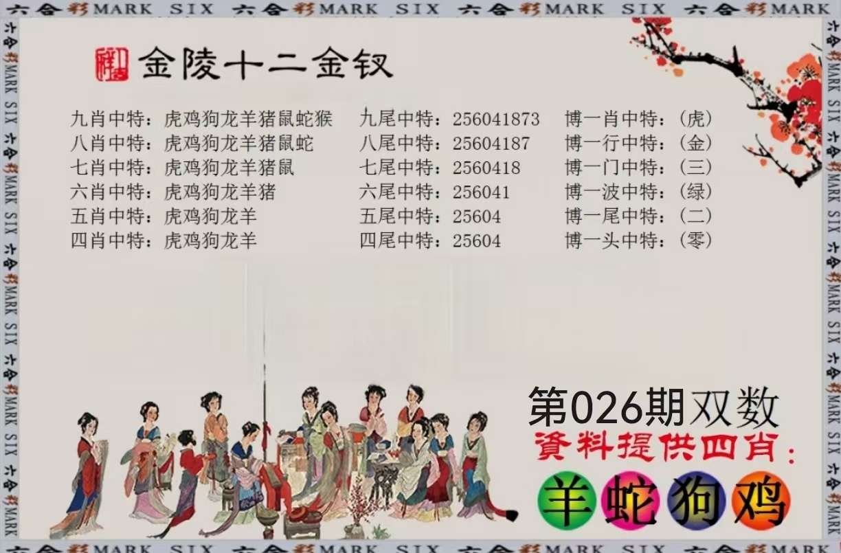 | 026期 | 【双数+鸡蛇】 | 开00 |