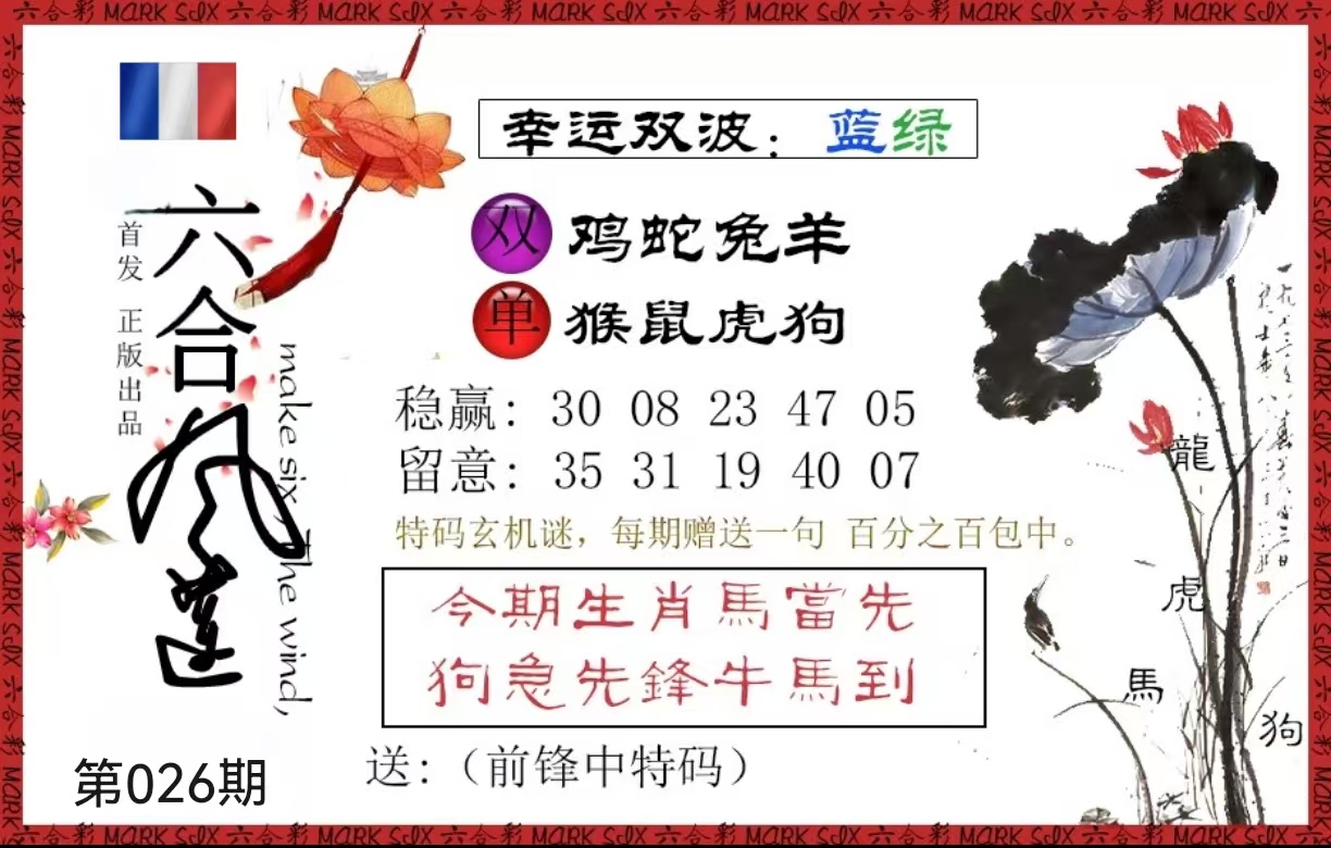 | 026期 | 牛 | 蓝双 | 2 | 6 | 开?00准 |