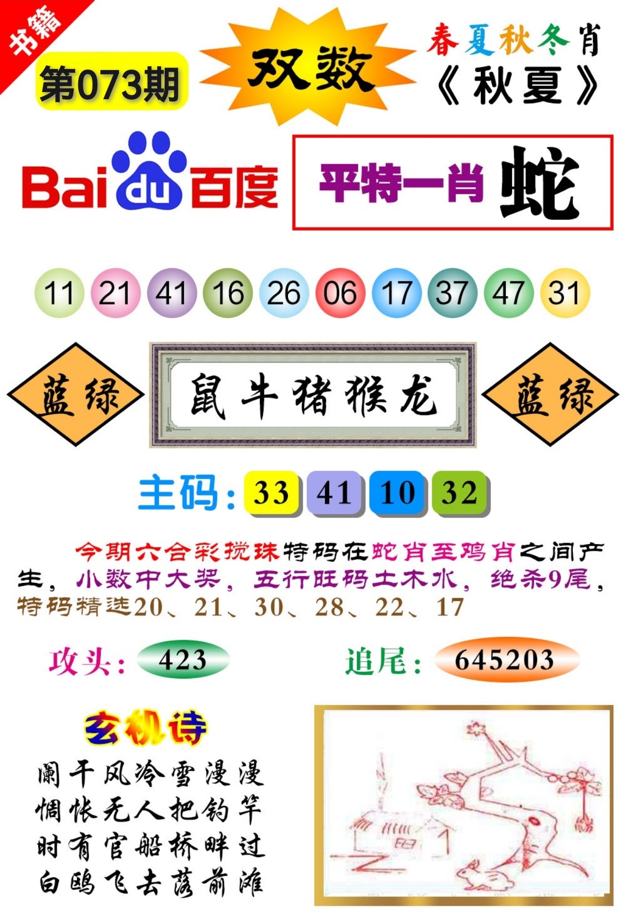 | 073期 | 蛇 | 蓝单 | 0 | 9 | 开?00准 |