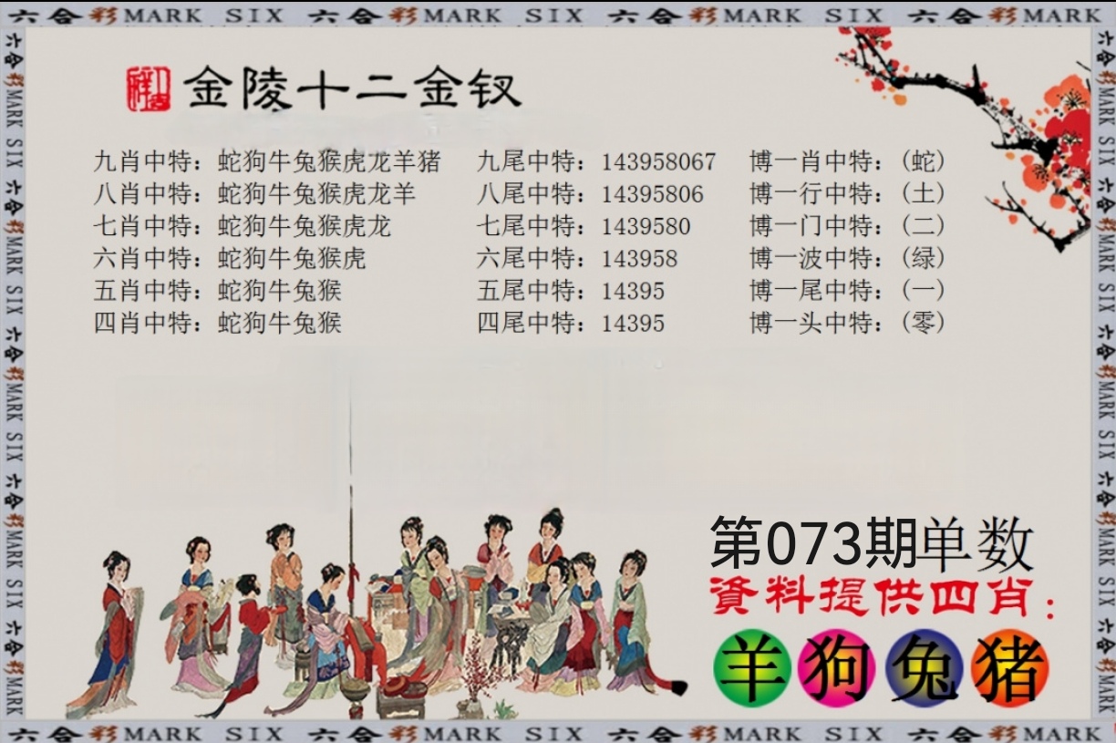 | 073期 | 【单+猪羊】 | 开:?00 |